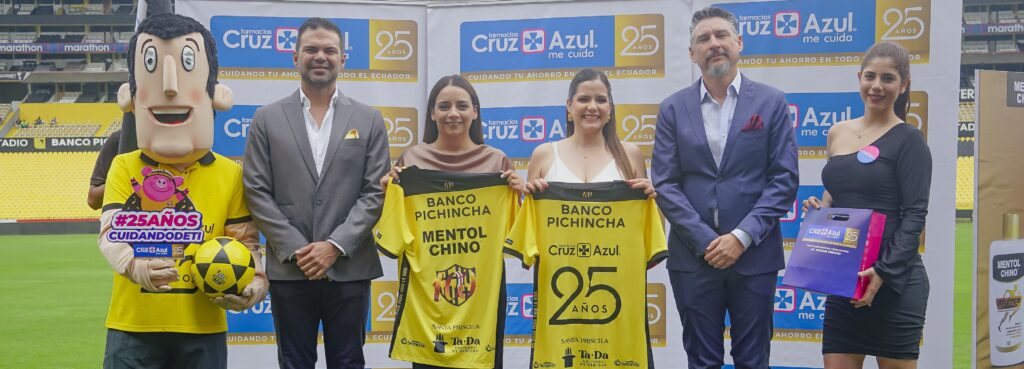 Este 2025 Farmacias Cruz Azul, celebra su 25º aniversario, consolidándose como la franquicia de farmacias líder del mercado ecuatoriano. Su cobertura y cercanía con las comunidades del país la posiciona como un auspiciante clave de Barcelona Sporting Club, en conjunto con Mentol Chino, un producto icónico para el cuidado de la salud en los hogares ecuatorianos.