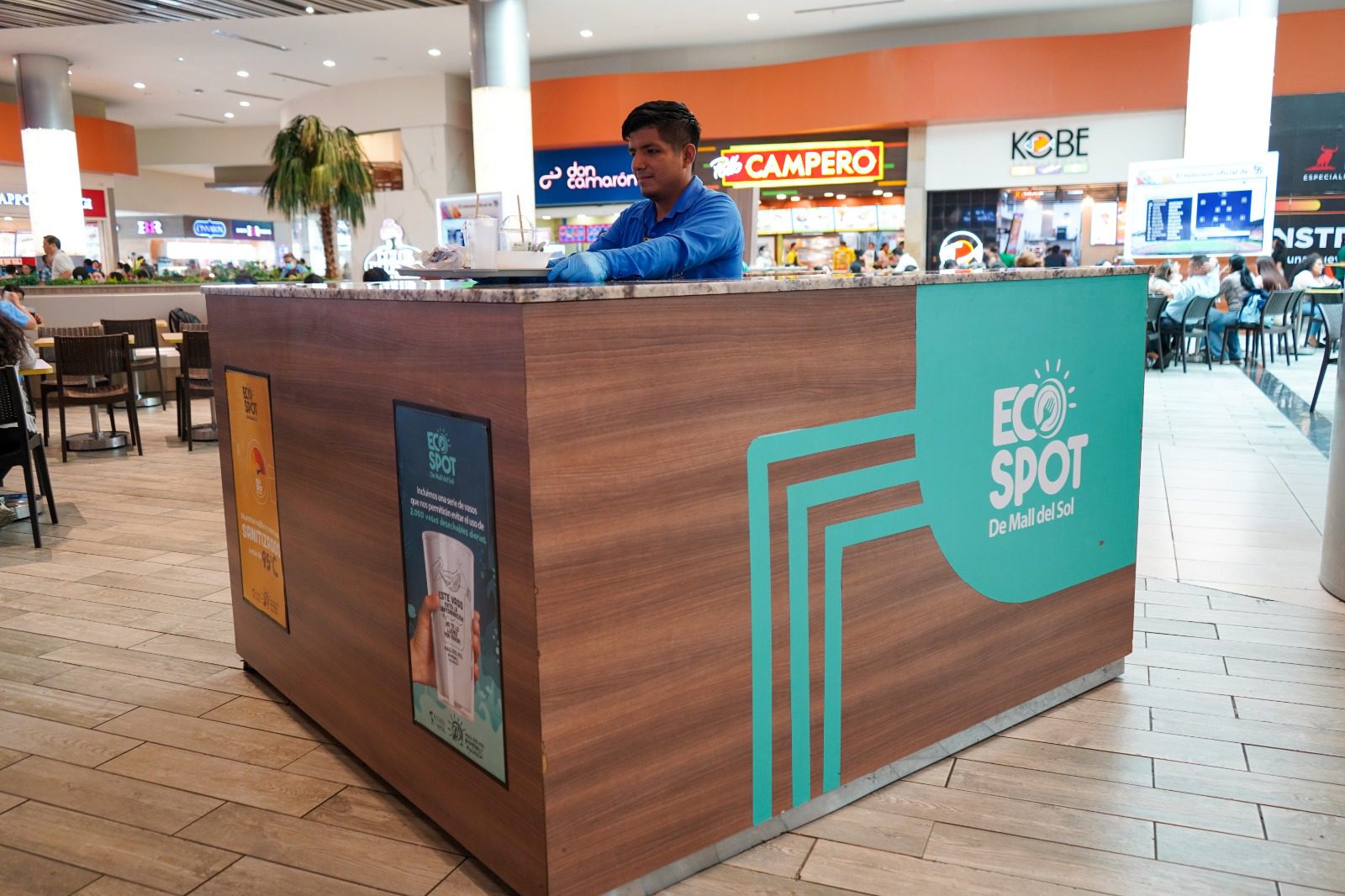Este esfuerzo es posible gracias a alianza establecida con Huella Verde en la que desde el 07 de febrero de 2022 se implementó puntos de recolección y clasificación EcoSpot y un área de lavado industrial de vajilla reusable, que convirtió a Mall del Sol en el primer centro comercial de la ciudad en cambiar los plásticos de un solo uso, por vajillas de cerámica, cubiertos de acero inoxidable y vasos de policarbonato reutilizables en su patio de comidas y más recientemente, en Portela.