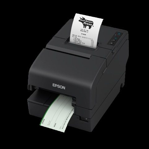 - Impresoras de recibos: Están diseñadas para agilizar transacciones y facilitar la impresión de recibos para los clientes. La Epson TM-H6000V es una impresora híbrida multifunción diseñada para bancos, que puede imprimir recibos, validar cheques e incluir funciones de endoso de cheques e impresión de documentos. La Epson TM-T88VII es una impresora térmica rápida que reduce el consumo de papel en hasta un 49%[1] y optimiza el espacio de trabajo en sucursales.