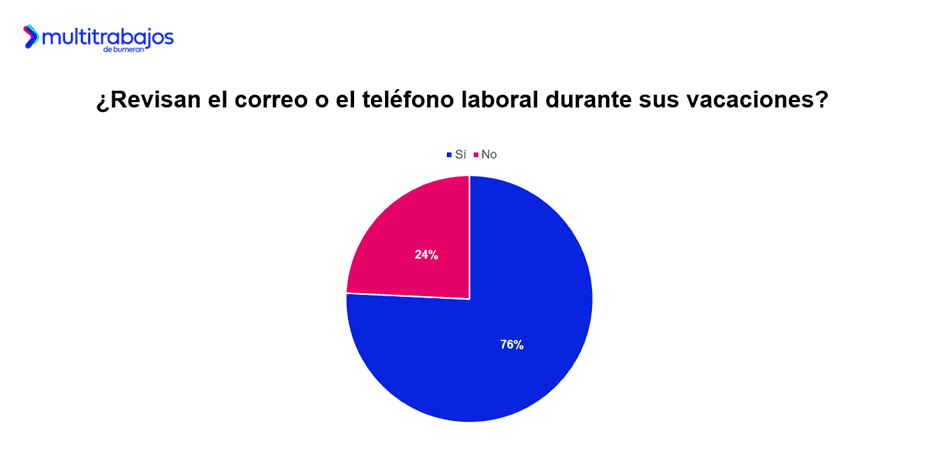 En general, el 76% de las personas trabajadoras admite revisar su correo y/o celular laboral durante las vacaciones. Además, el 36% menciona que siente ansiedad si no lo hace y el 15% de personas trabajadoras asegura sentir culpabilidad al disfrutar de sus vacaciones.