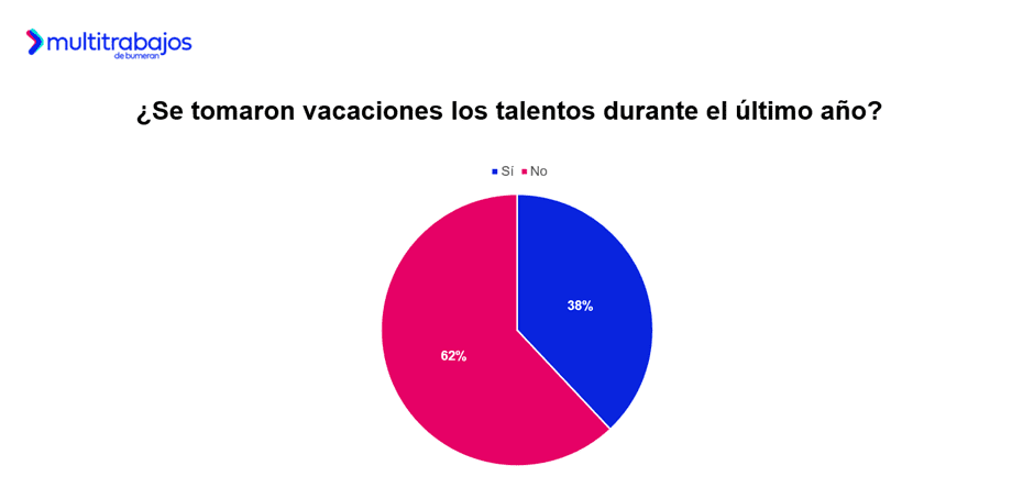 El 62% de las personas trabajadoras no se tomó vacaciones laborales en el último año, mientras que el 38% sí lo hizo.